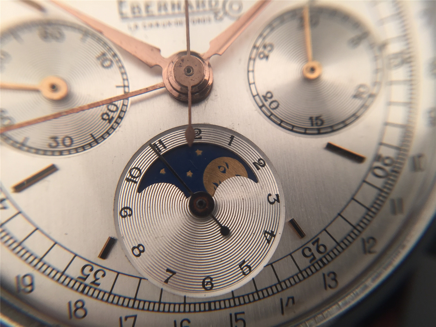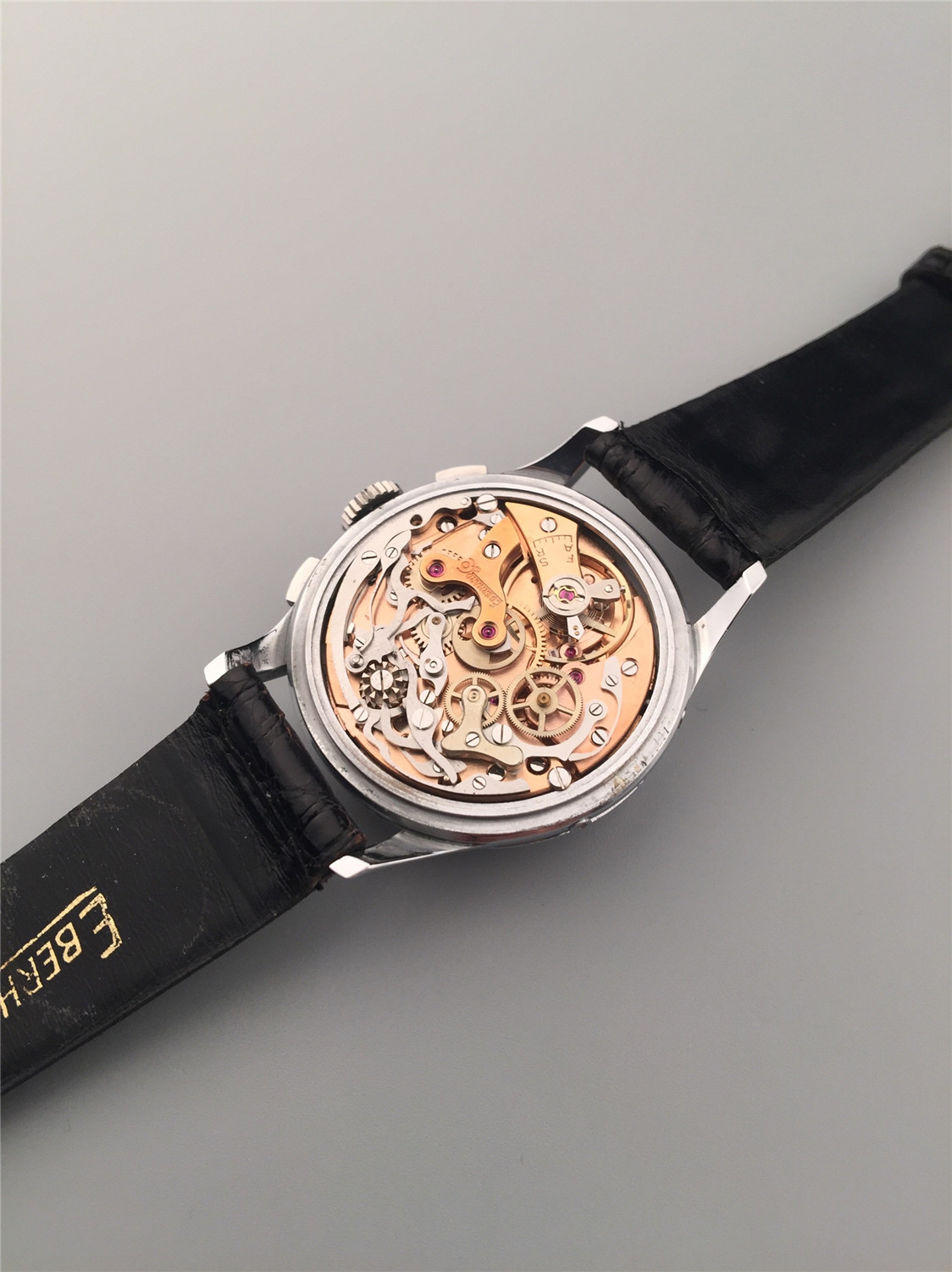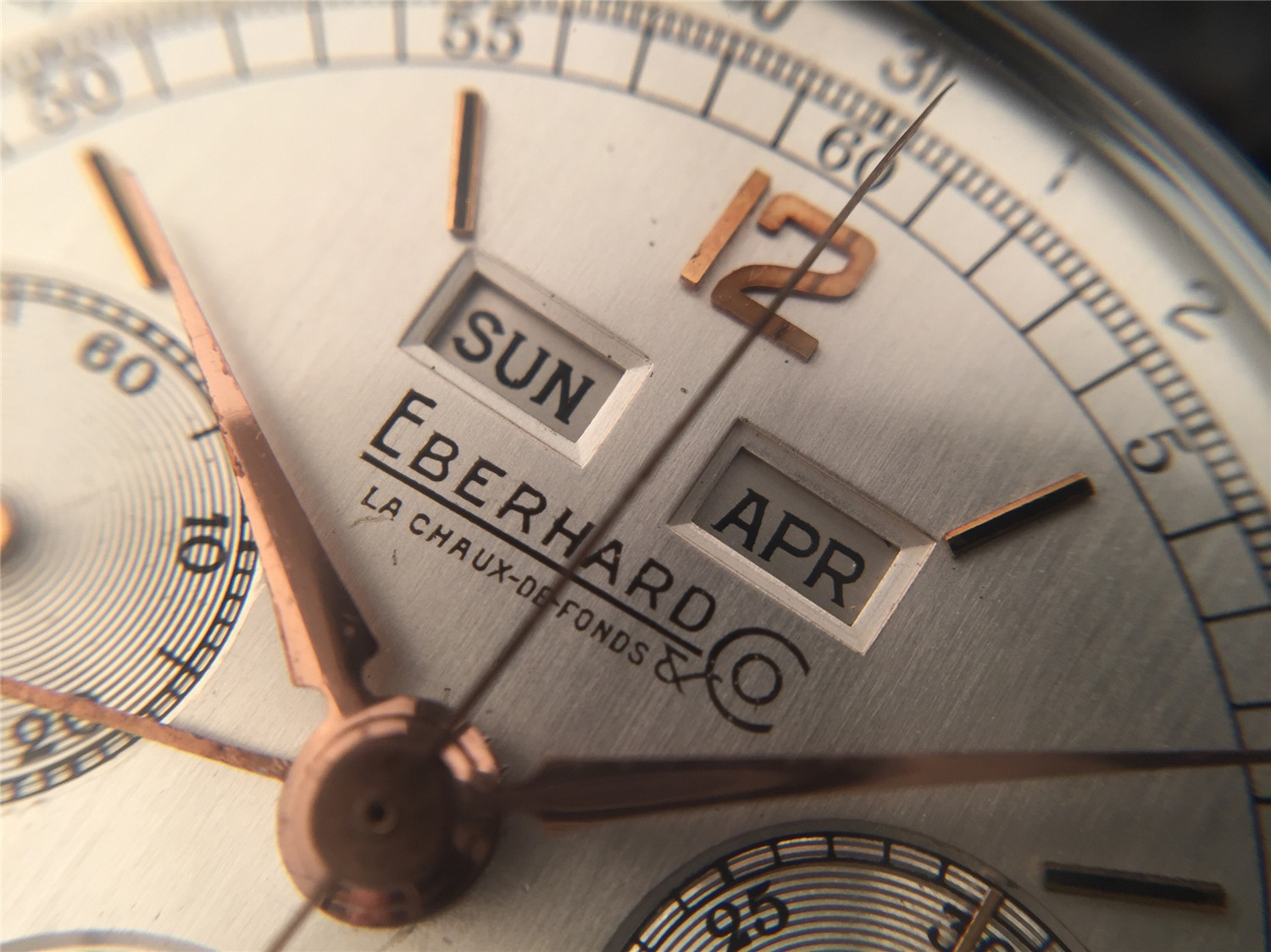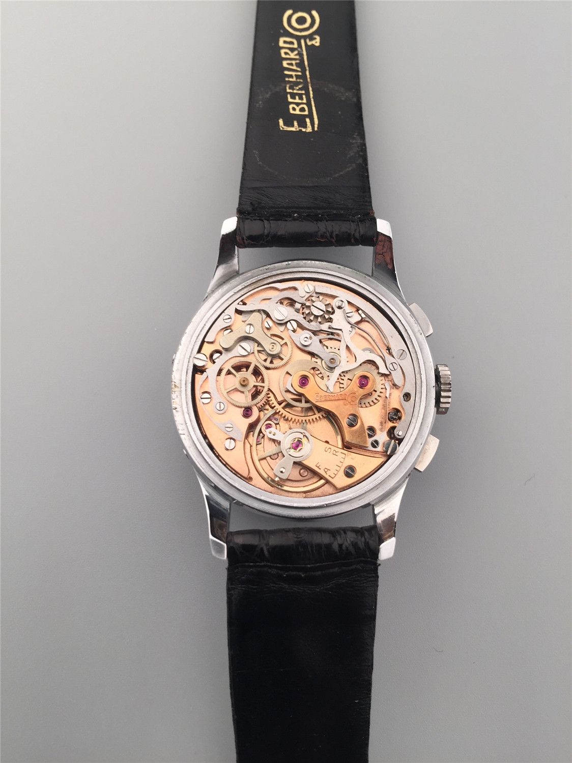 Eberhard男士計時腕錶,鋼材質,月份、星期和日曆顯示,手上鏈機芯,36mm,約1960年代,附原裝盒、證。