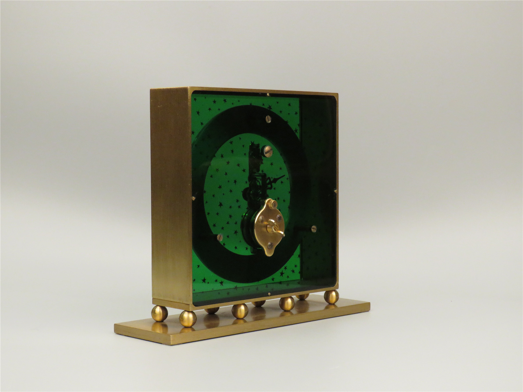 积家座钟,玻璃、树脂和黄铜,约1960年代,8日链,尺寸14*18.5*3.7cm。
