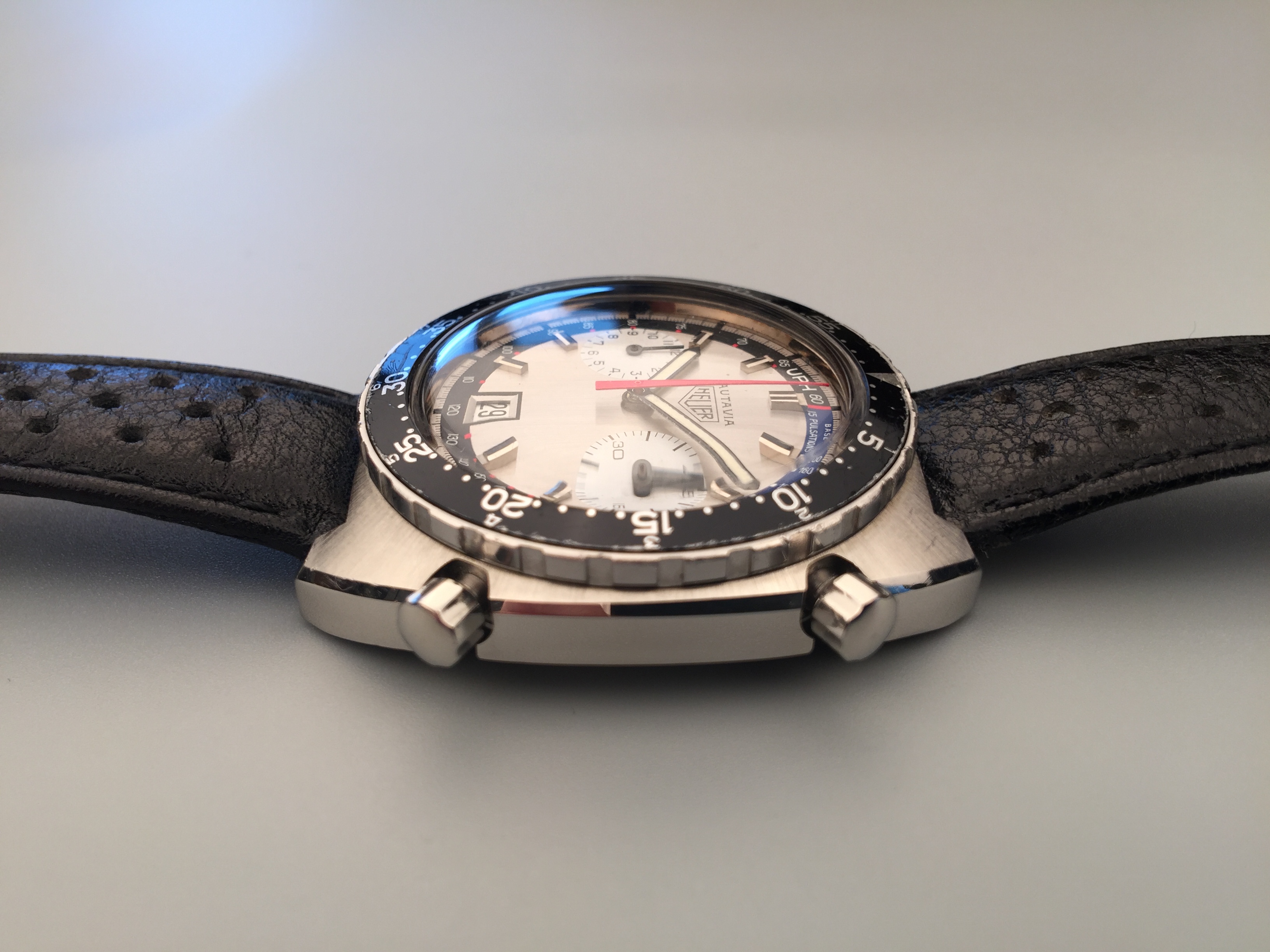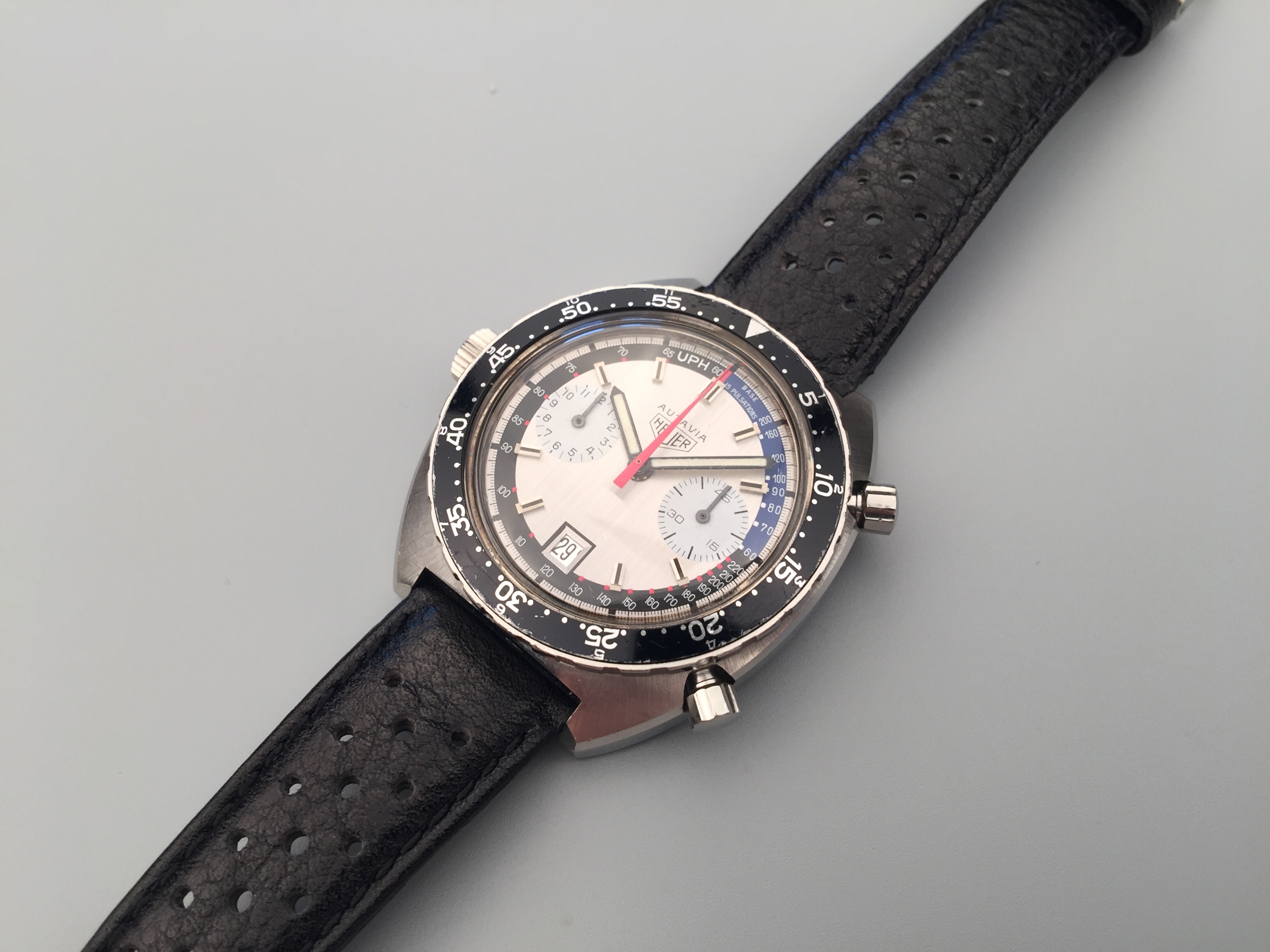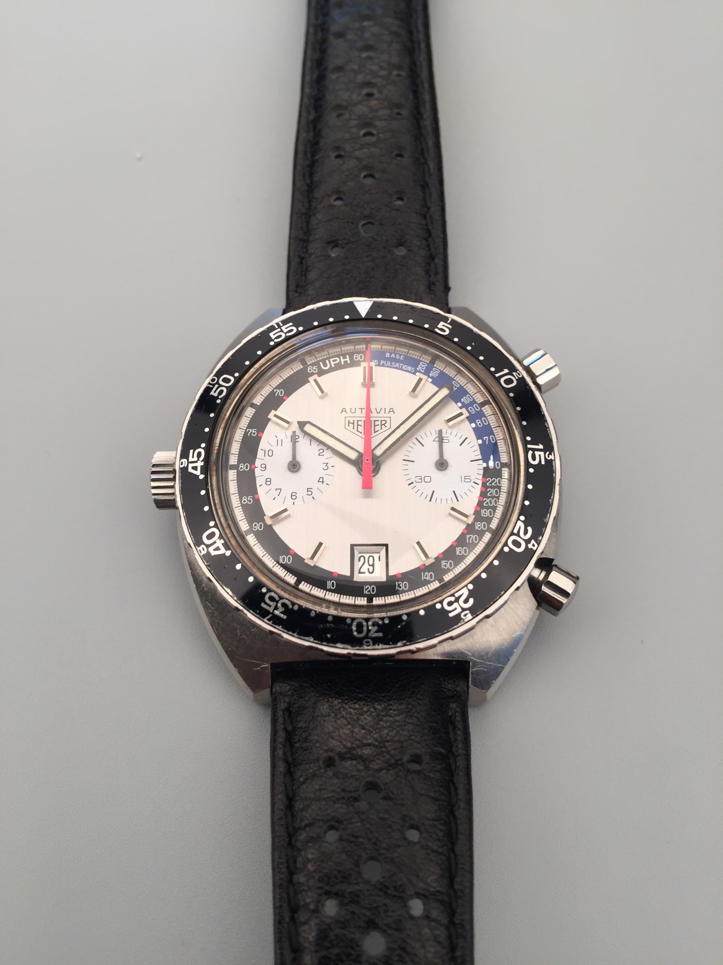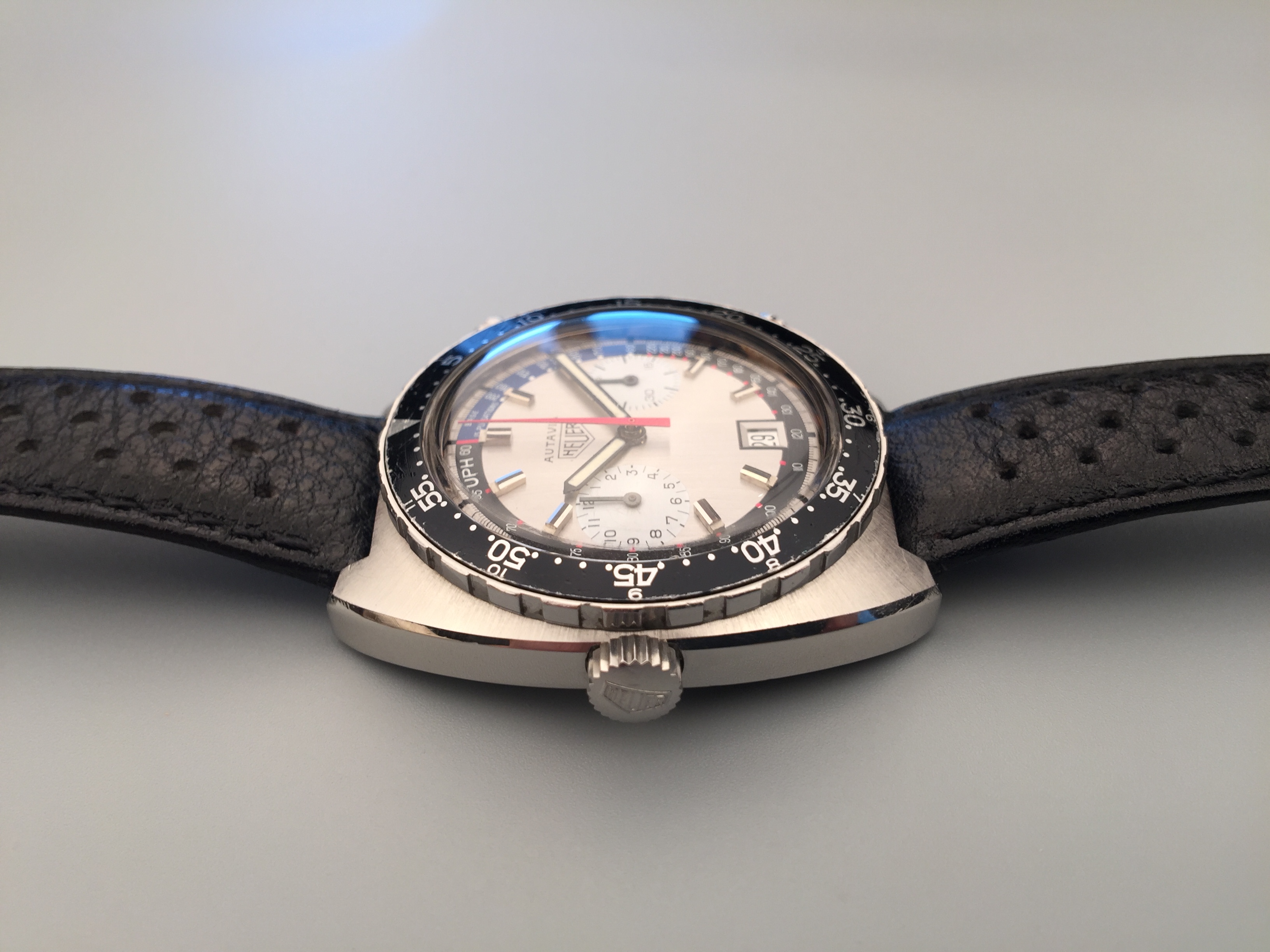 豪雅Autavia計時腕錶,Ref. 1163 V,計時及日曆,製于1972年。