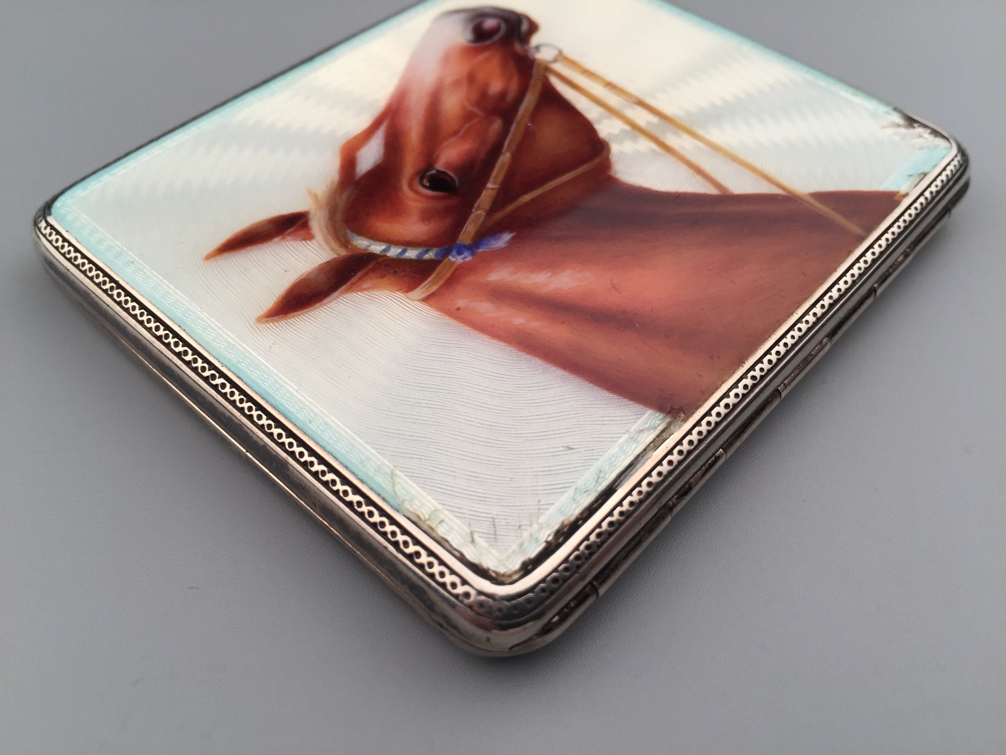 Vintage银质珐琅盒,80 x 67 x 8 mm。