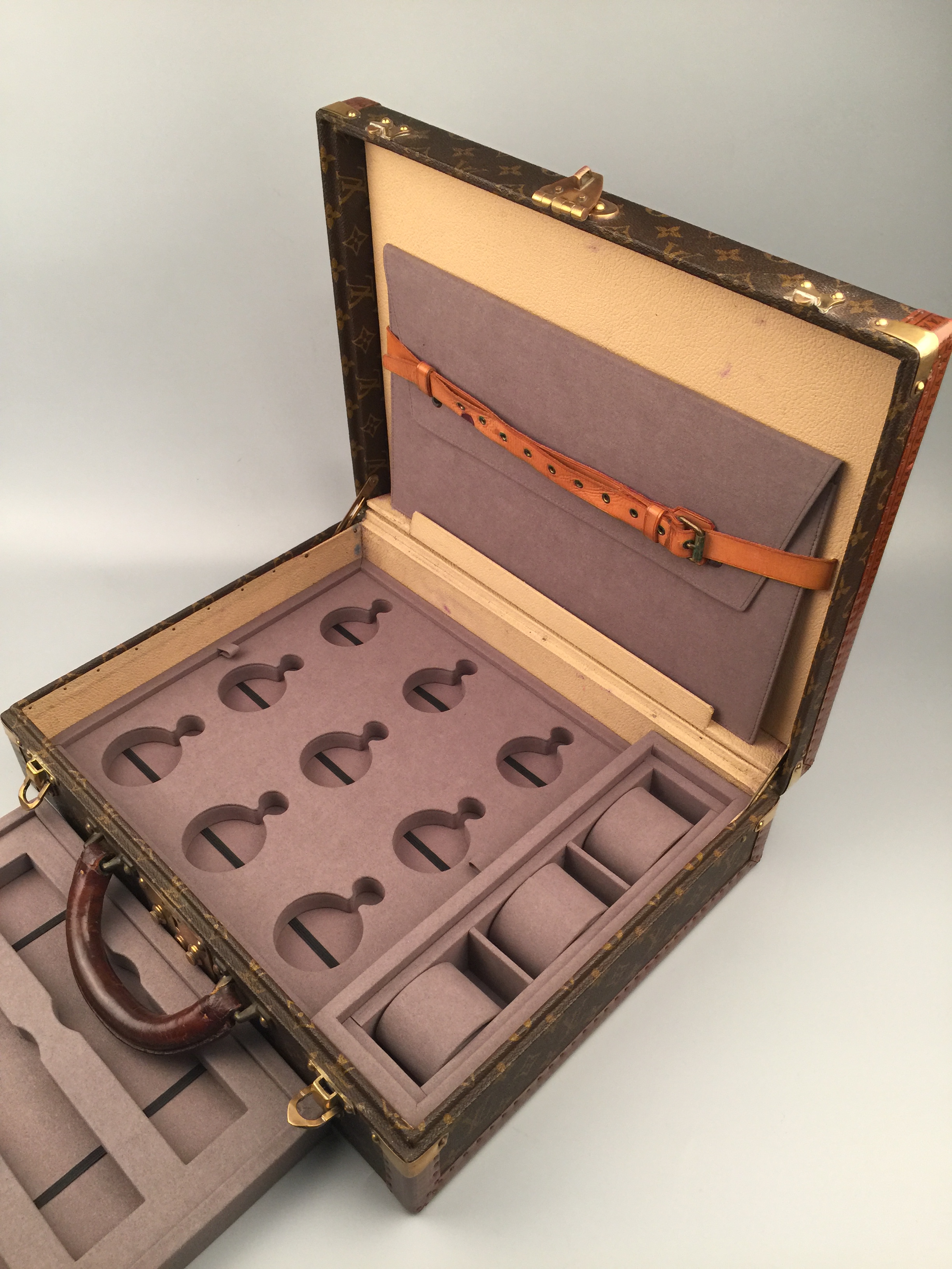 Vintage LV 定制錶盒,可容納7枚腕錶、9枚懷錶,附托盤、文件夾(可存放證書)。