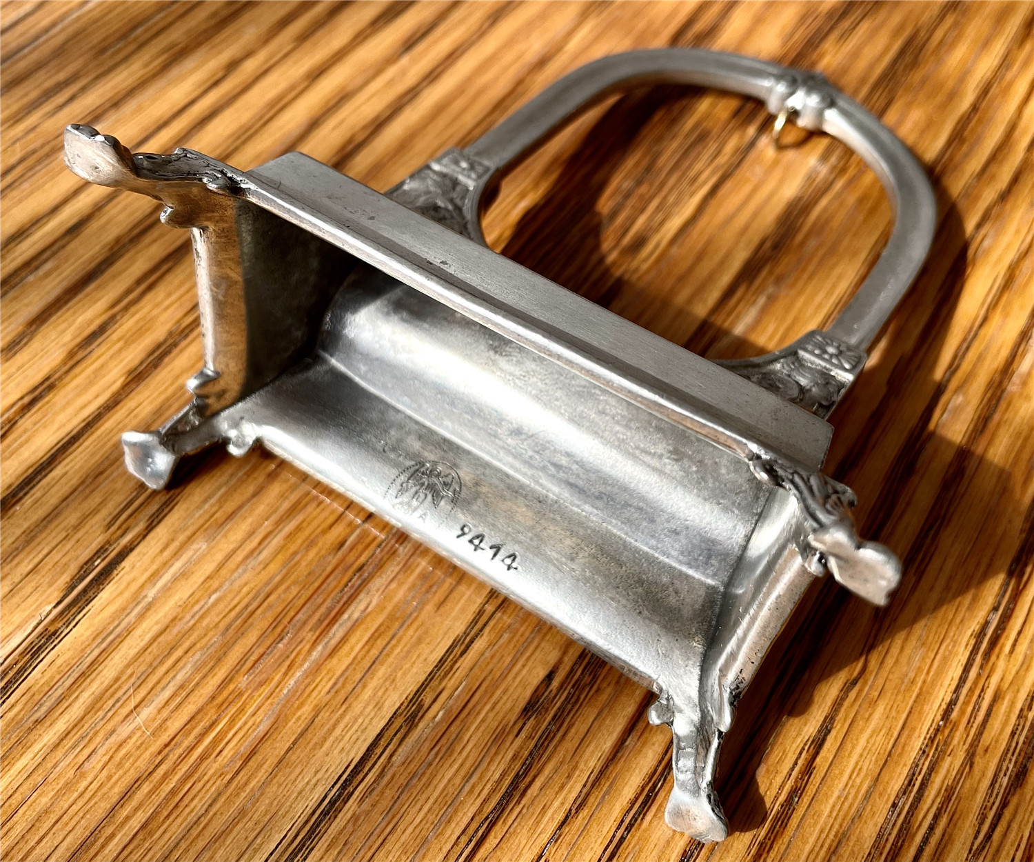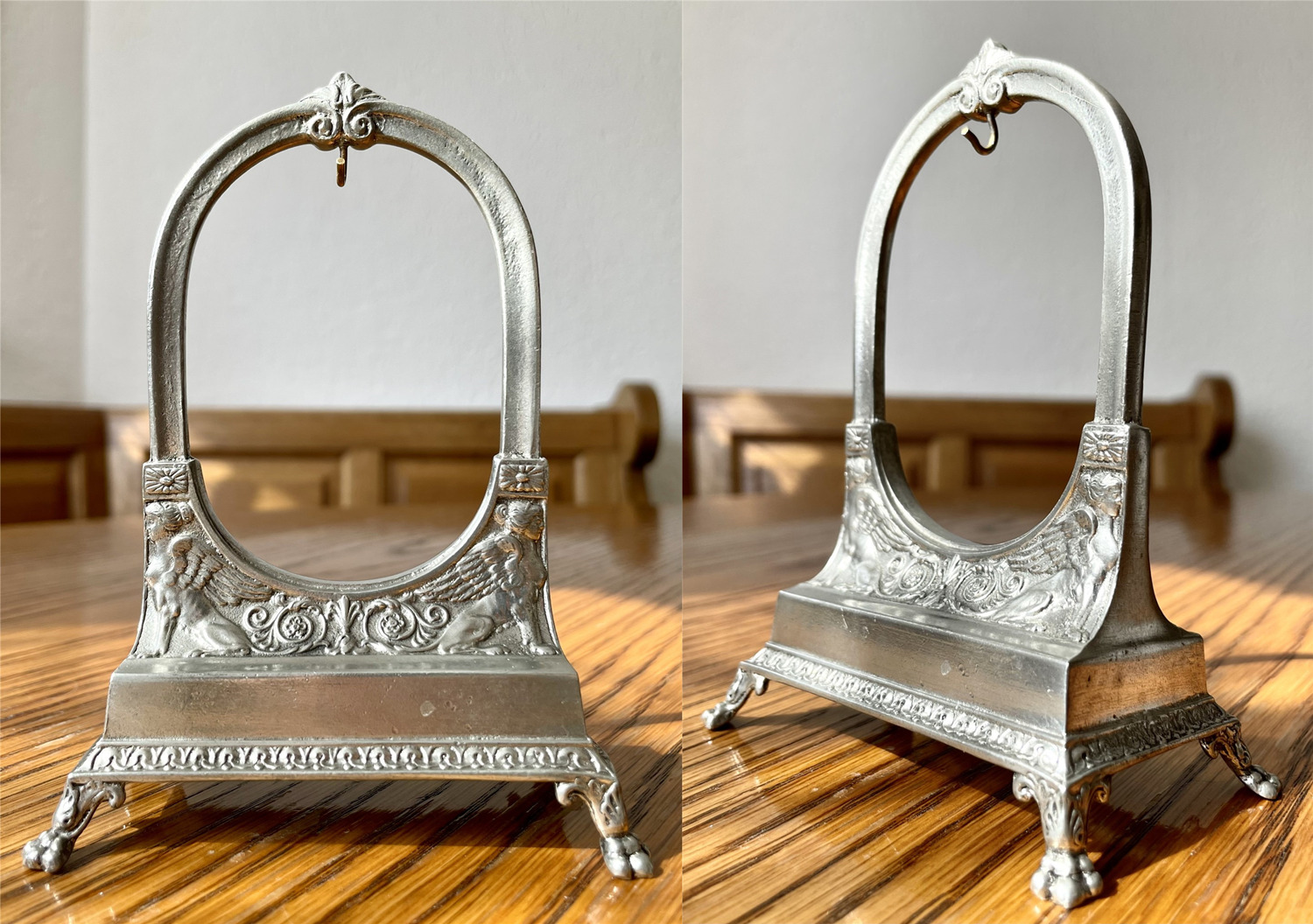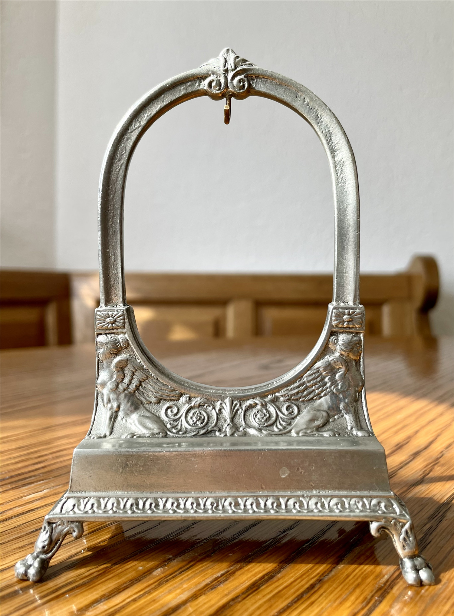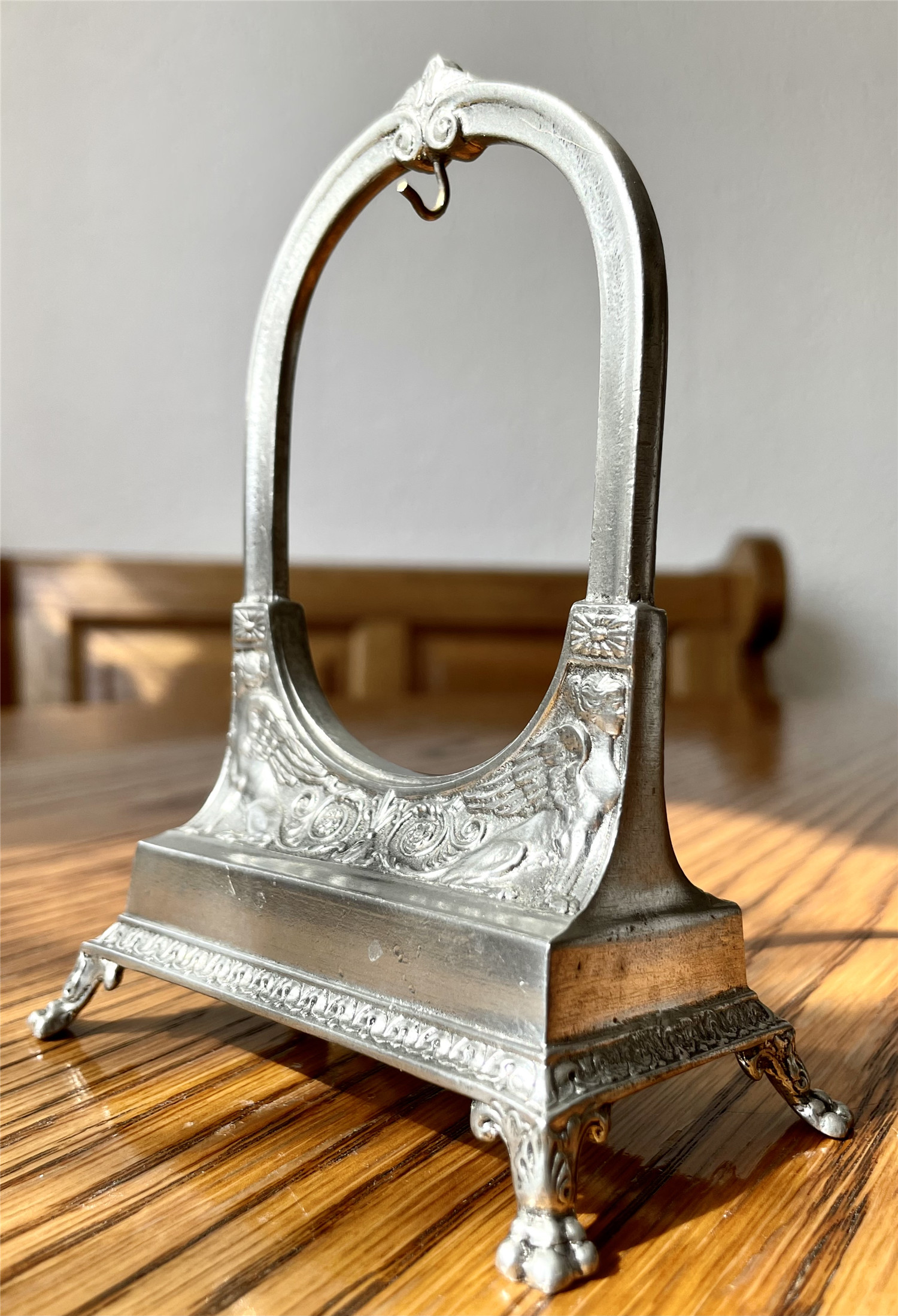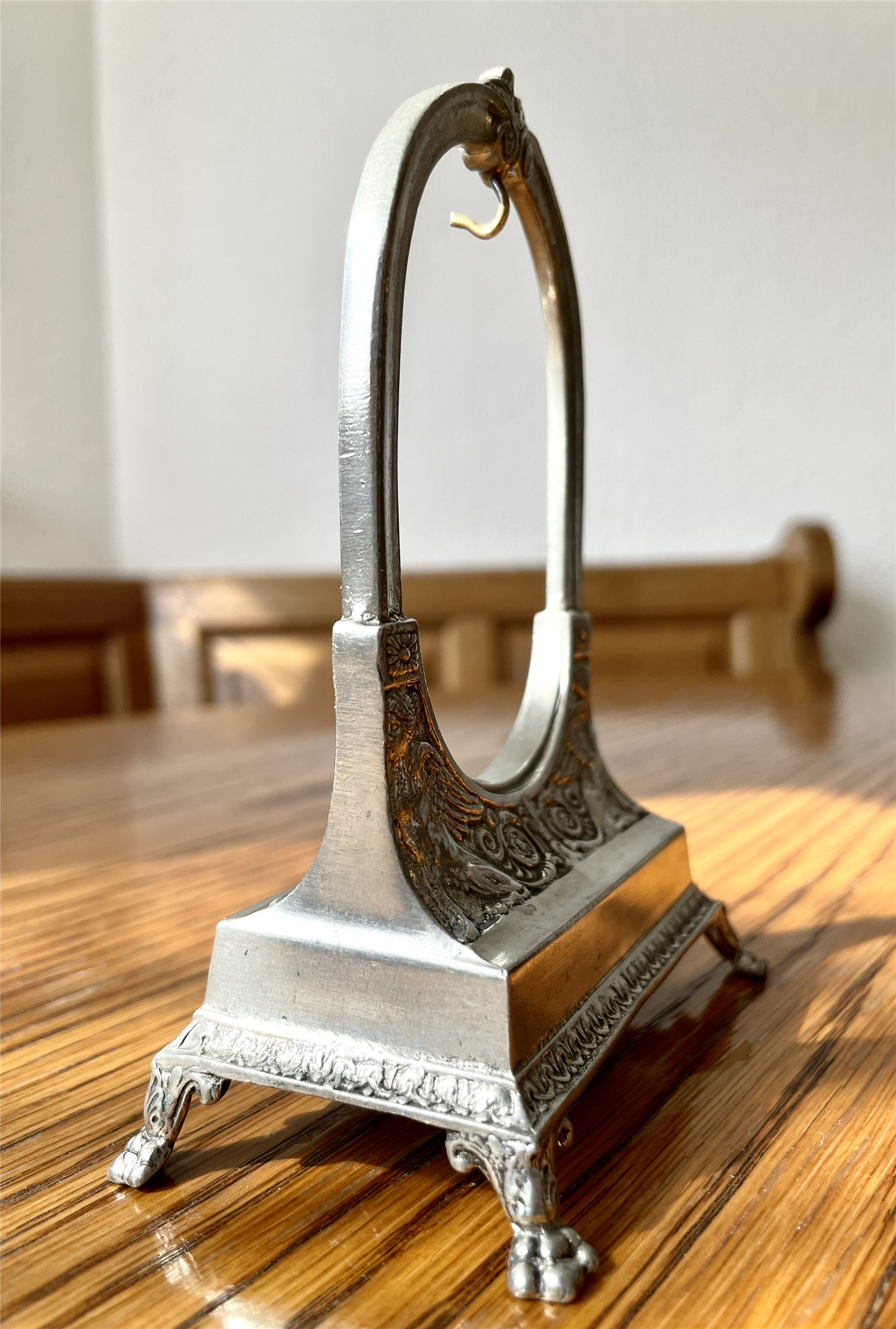 年,锡材质,雕刻精美的人面兽身,四脚兽足,高