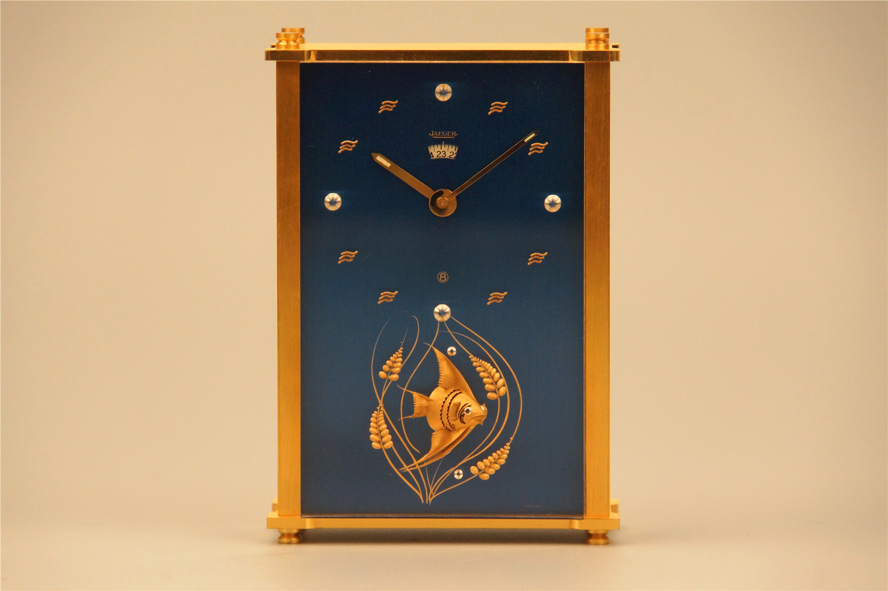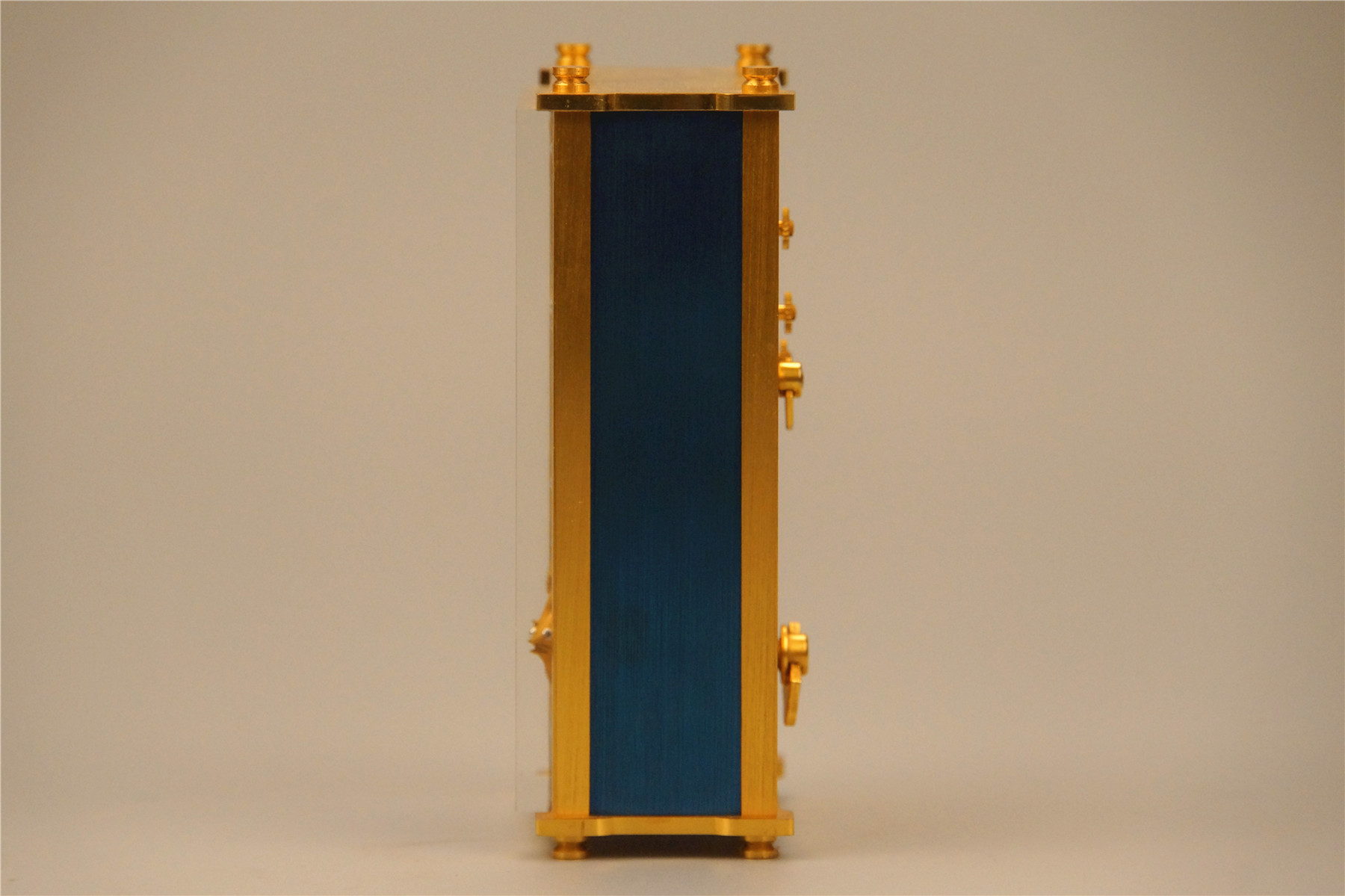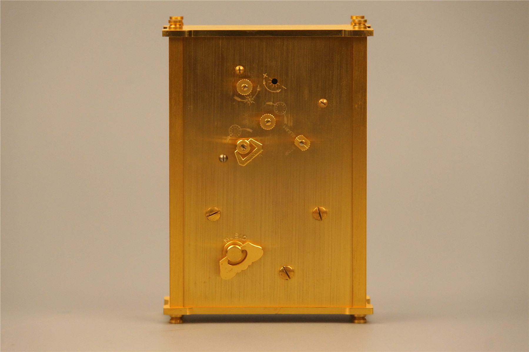積家音樂鬧鈴小座鐘,約1960-1980年代,12.8x8.8x4.5cm,黃銅與樹脂,立體雕繪,精緻玲瓏,無附件。