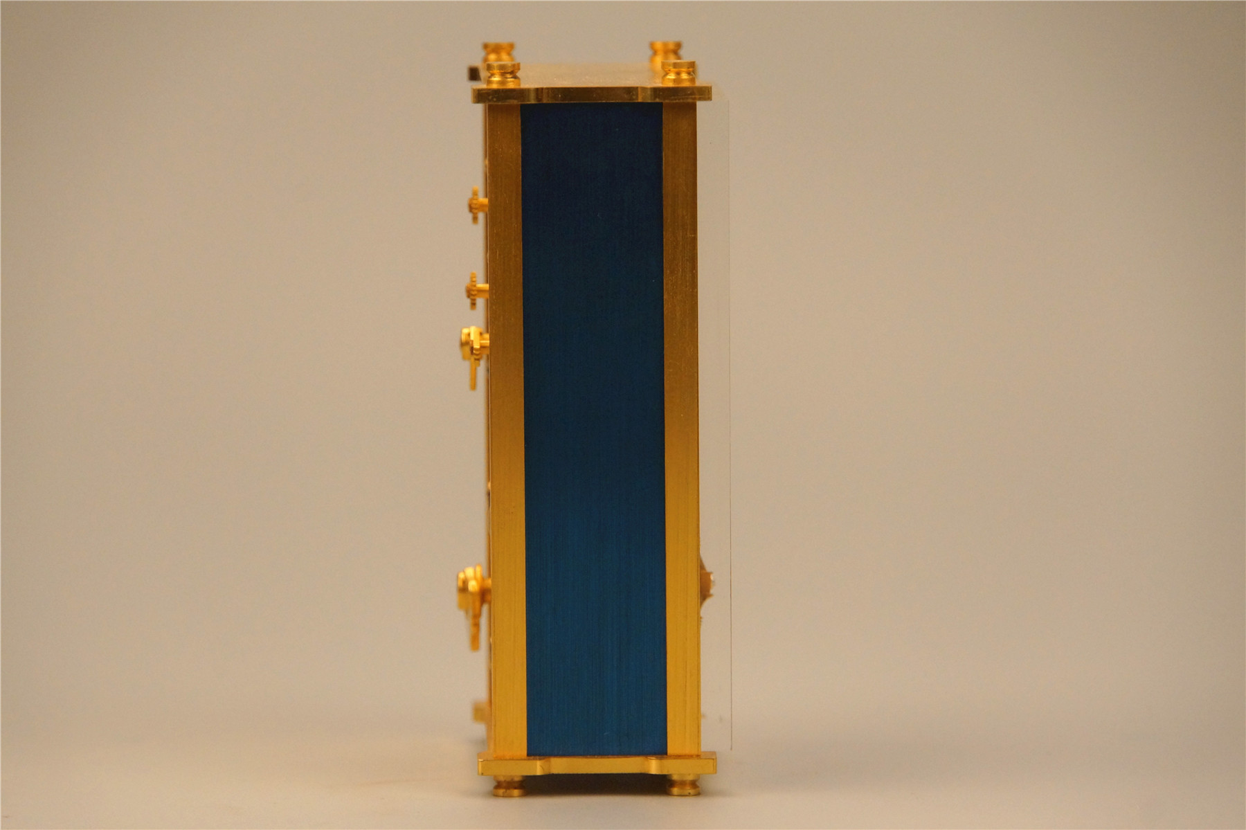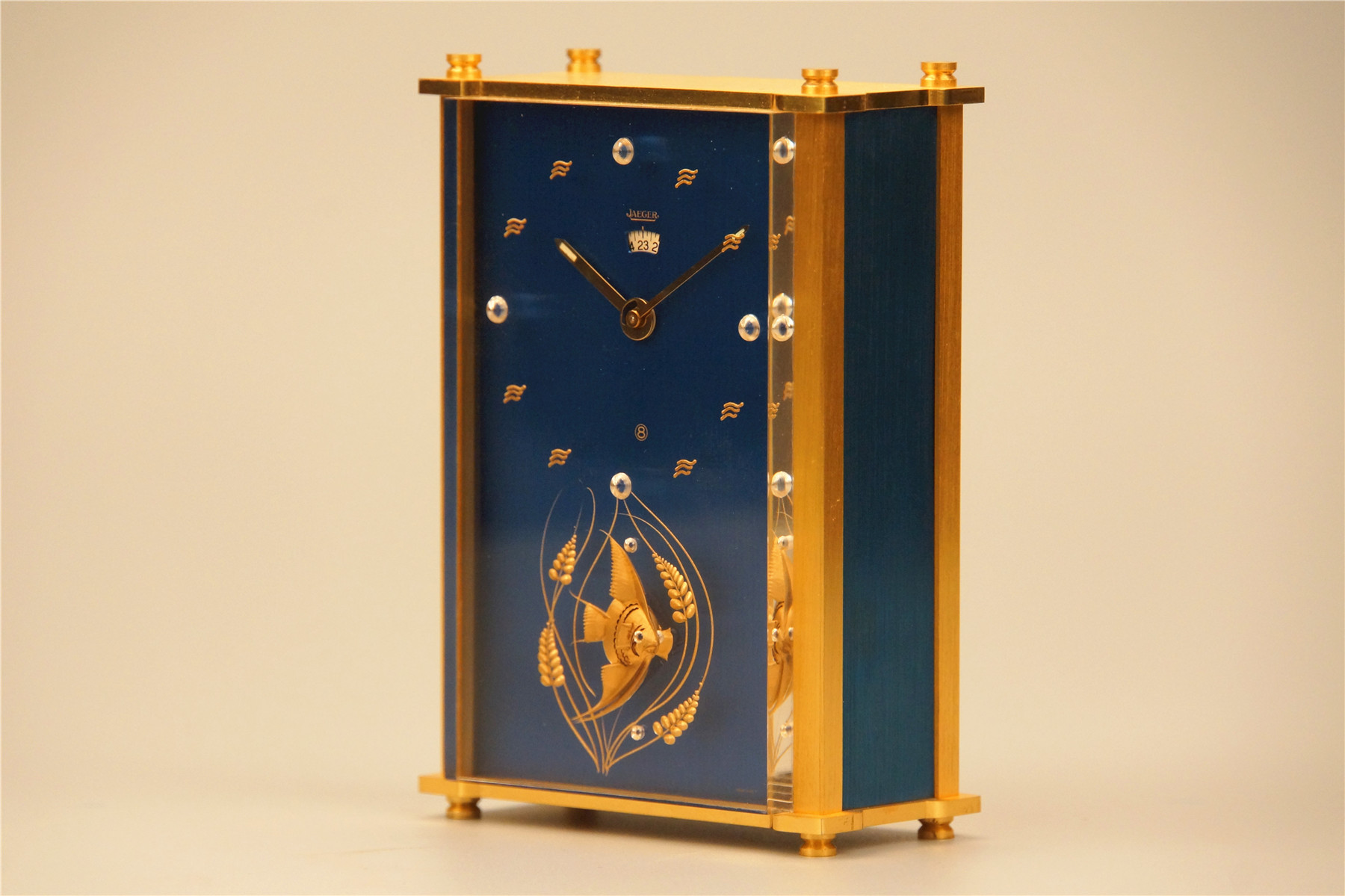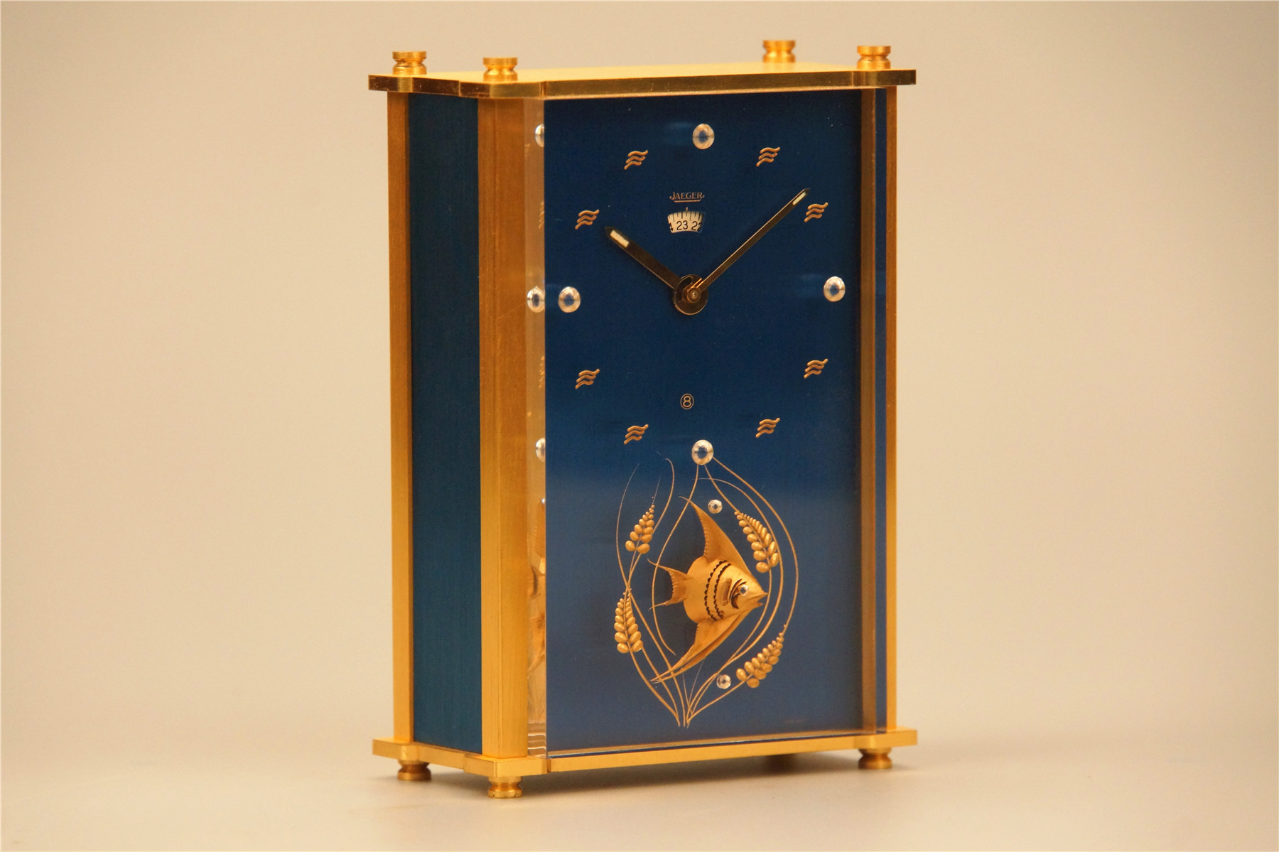 積家音樂鬧鈴小座鐘,約1960-1980年代,12.8x8.8x4.5cm,黃銅與樹脂,立體雕繪,精緻玲瓏,無附件。